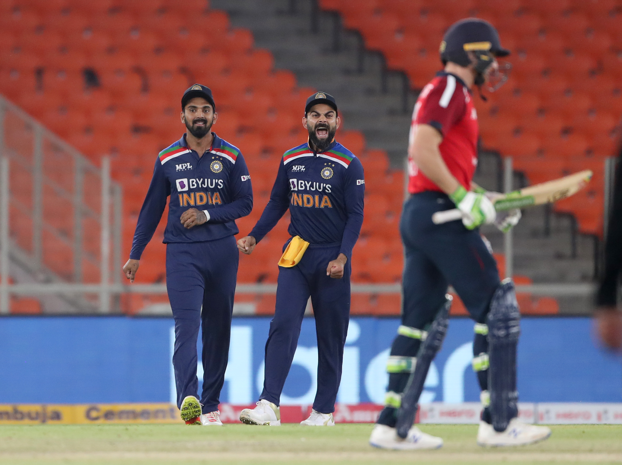 केएल राहुल १४, रोहित शर्मा १२, हार्दिक पाण्डय ११ रनमा आउट हुँदा शार्दुल ठाकुरले अविजित १० रन बनाए । कप्तान विराट कोहली १ रनमा आउट भए ।